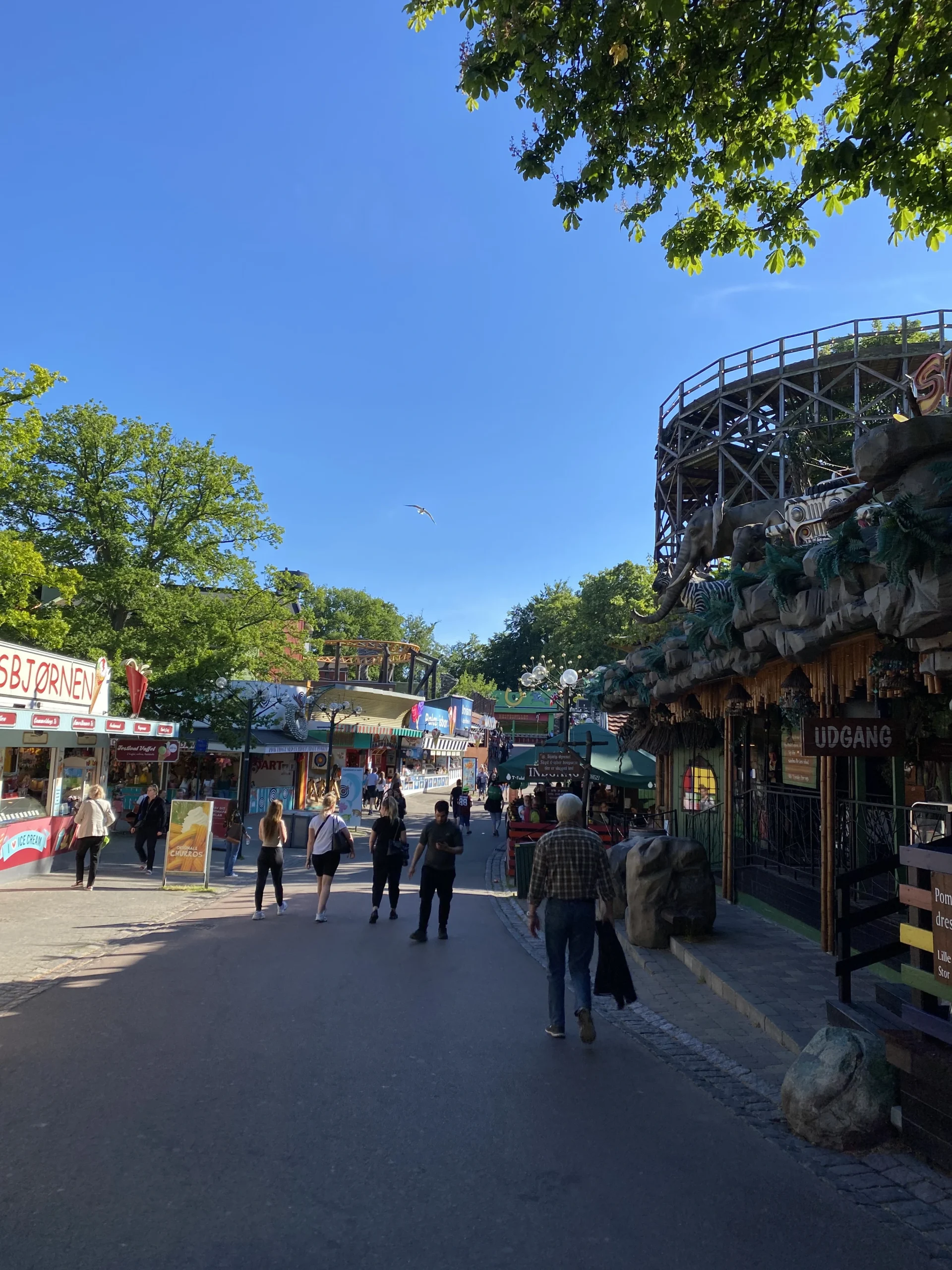 Bakken is het oudste pretpark ter wereld en ligt in het natuurgebied Dyrehaven, vlakbij Kopenhagen. Je kunt er makkelijk komen met de auto, trein of fiets. Ik fietste er naartoe en dat duurde ongeveer 45 minuten. De route langs het strand en het Charlottenlund Fort is erg mooi. De entree van het park is gratis, maar voor de attracties betaal je meestal een paar euro per ritje, dus neem zeker wat contant geld mee. Het is zeker een bezoek waard!