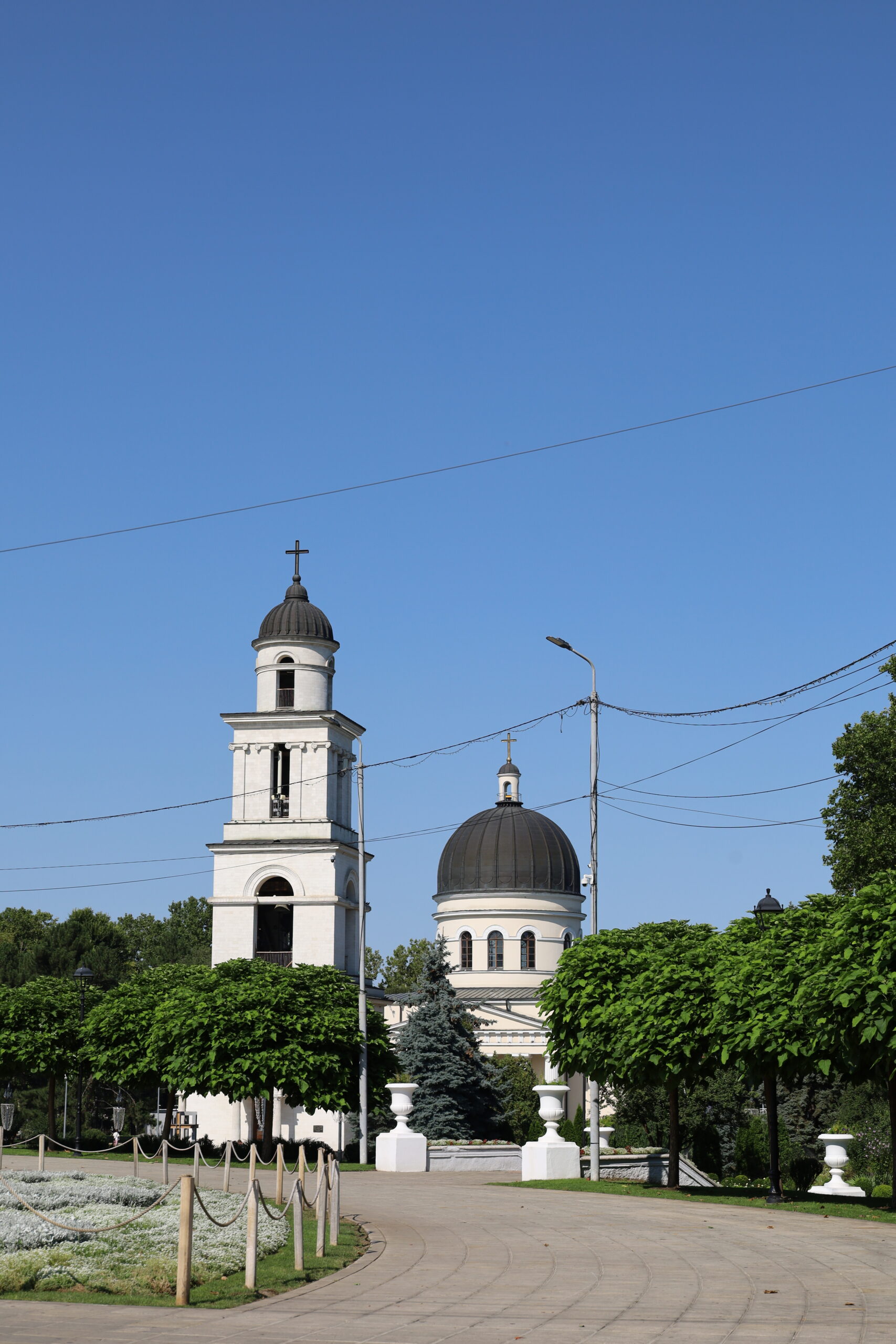 Aan de rand van het park staat de Metropolitan Cathedral of Christ’s Nativity, de belangrijkste orthodoxe kathedraal van de stad. De buitenkant is vrij sober, maar binnen is de kerk mooi en rustig. Het is een fijne plek om even binnen te lopen en de sfeer te ervaren. Voor de kathedraal staat een grote klokkentoren die het plein een open en ruim gevoel geeft.
